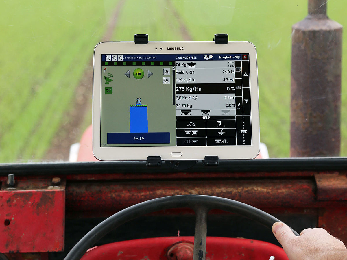 Do you know how to use a tablet; Yes, you can also enjoy GPS on your tractor and spreader. Use an Android tablet to use our app CALIBRATOR FREE. Then you can enjoy section control and application maps. The solution you easily move between your tractors. Then you can use any tractor regardless of age!