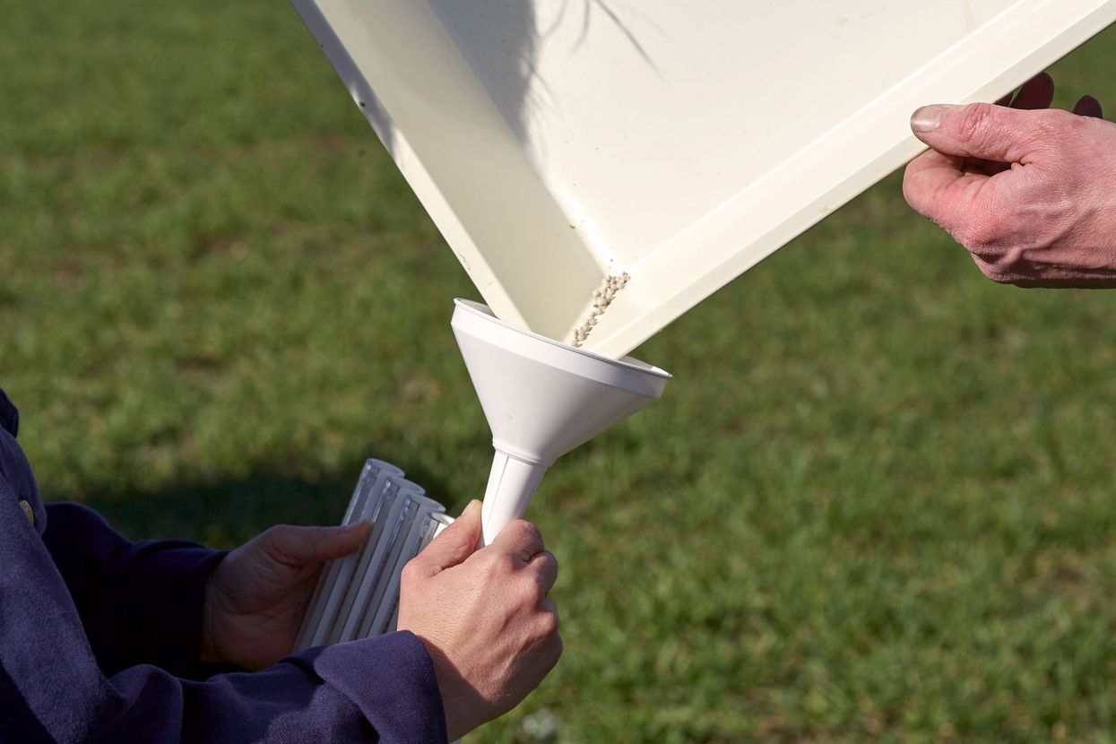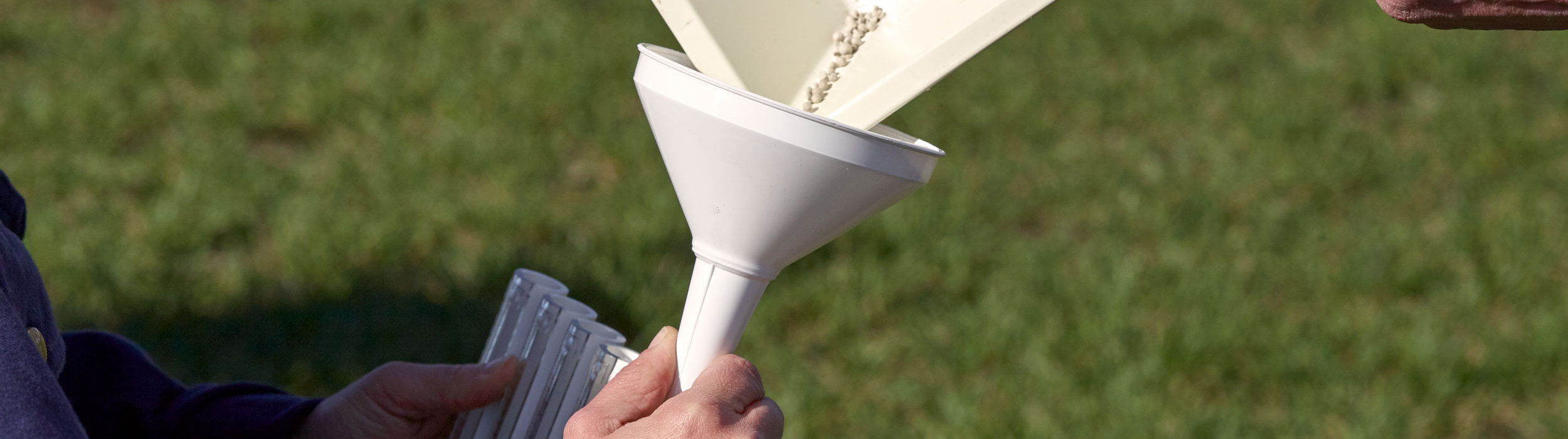 At large working widths we recommend using test trays to control the fertiliser's spreadability. We offer a set of 7 test trays with measuring pipes for spreading test in the field. In the spreader's manual you will find a thorough instruction and guidance on how to achieve optimum overlap in the field based on the result of the tray test.